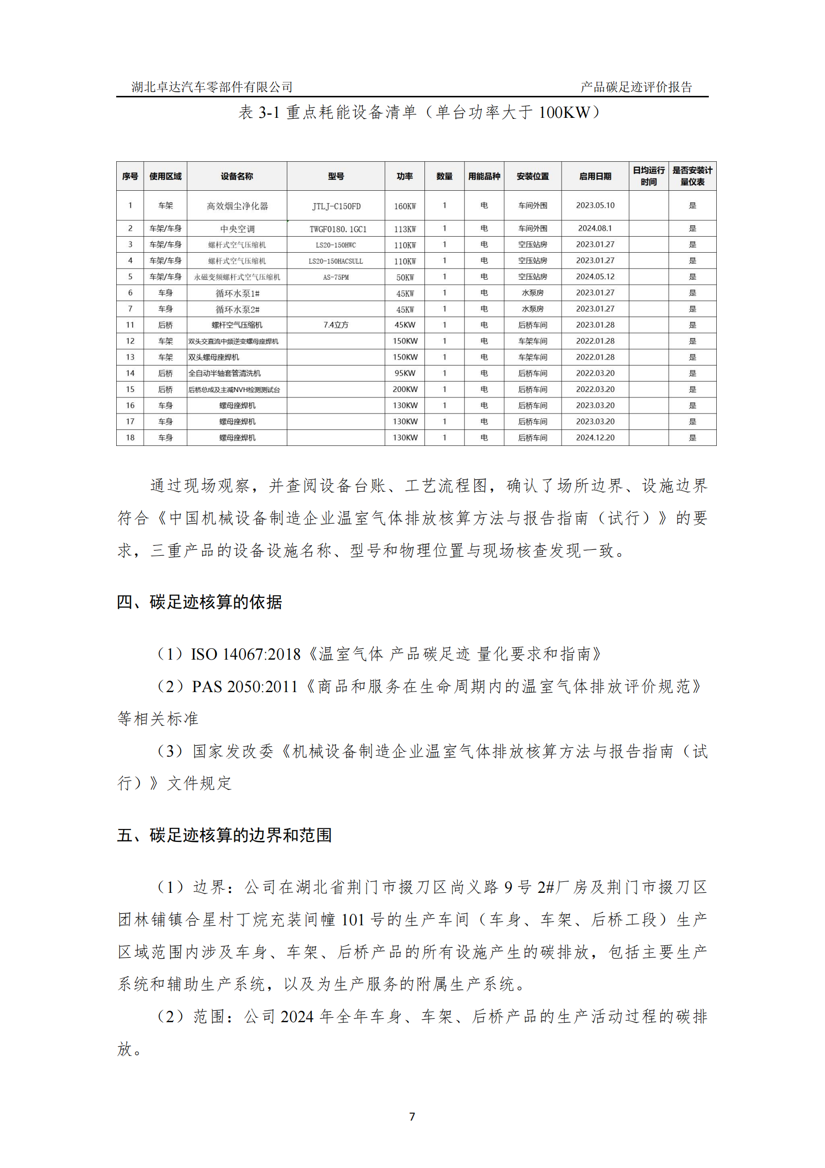 湖北卓達(dá)汽車零部件有限公司產(chǎn)品碳足跡評價報告